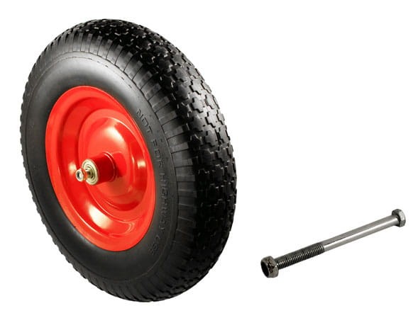 Koło pasuje do większości taczek budowlanych i ogrodowych wyposażonych w oś o średnicy 9 mm.