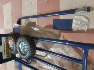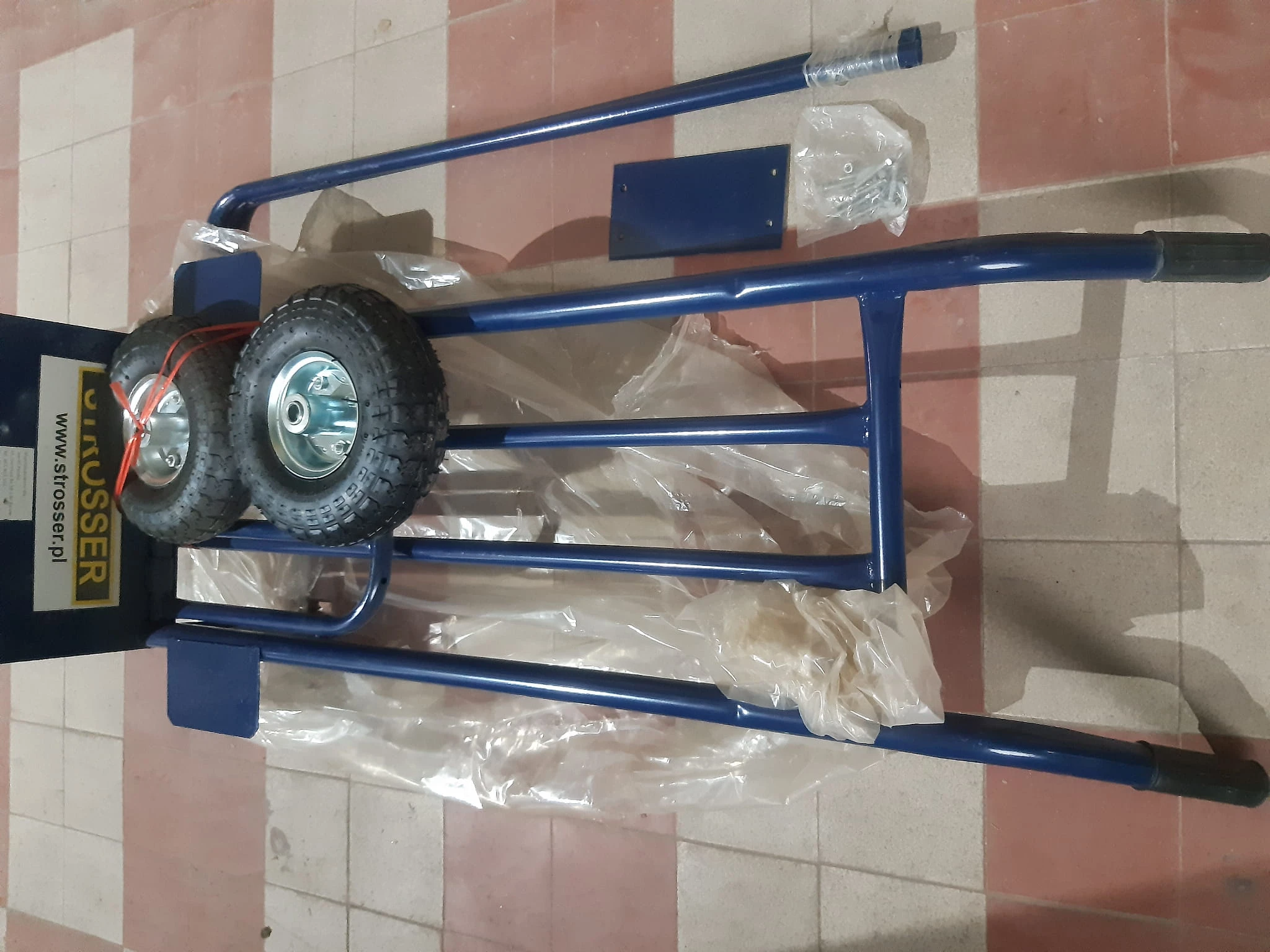 Wózek do przewożenia drewna z pałąkami nowy nie używany- uszkodzony. Wózek posiada przekrzywioną konstrukcję.